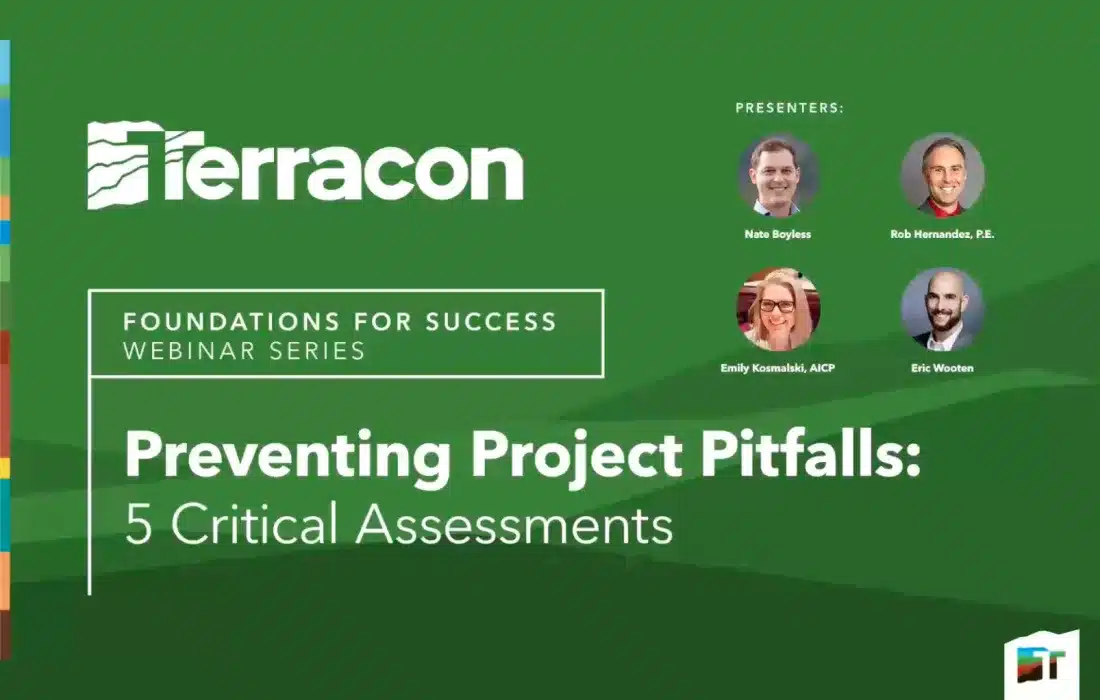 Every project site is unique, and each presents potential opportunities, challenges, and pitfalls. Before signing or moving any dirt, it’s essential to understand five key areas of acquisition due diligence that can mitigate risks, speed up time to investment, and ensure long-term site viability. With 60 years of experience on thousands of sites — and predictive analytics and visualization tools to speed the process — Terracon experts will provide an overview of five key assessment areas, including what to watch out for, lessons learned, and why each is essential: